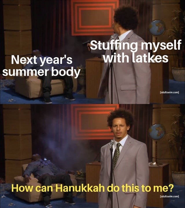 Insanely fast mobile-friendly meme generator. And while certain personality types and generations may not appreciate the fun in funny meme there are plenty others who do and will enjoy these. Reality penis wings neighbors chanukah creation Theres no easy way to combine Hanukah and Christ-. Hanukkah 2015 is officially underway and just like with any other holiday we here in the land of Internet observe the occasion by. Be creative with other items matching those initials. To help you kick off your Chanukah festivities with a smile weve gathered 10 funny Hanukkah memes for this Jewish festival of lights. Basic Chanukah Meme I think we got all the standard jokes in there. Funny Hanukkah memes highlight the most humorous moments of the celebration. See more ideas about hanukkah jewish humor humor.